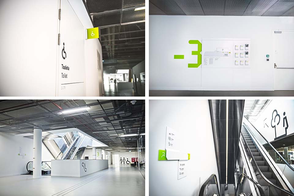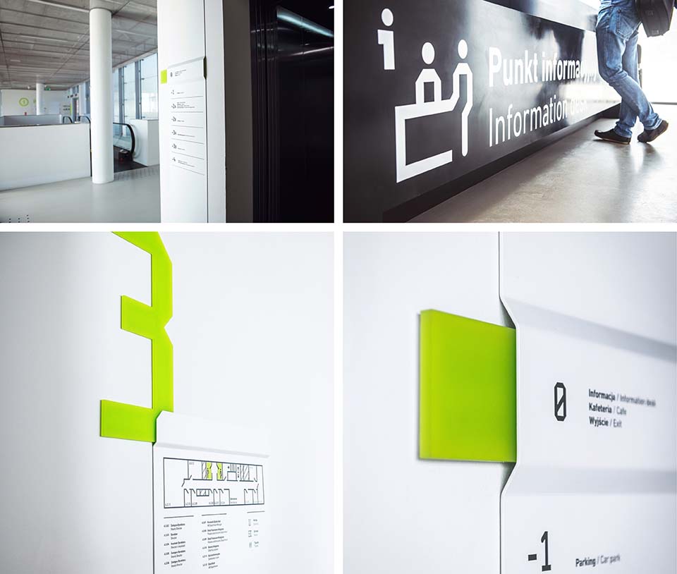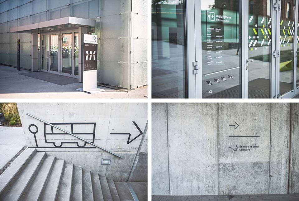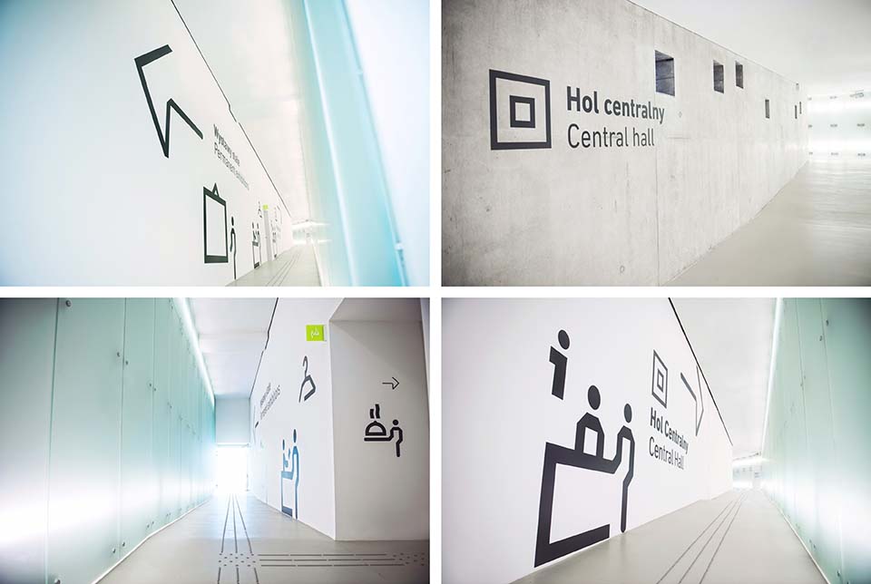 西里西亞博物館就是在這樣的背景下在某個煤礦廢墟上興建。該用地處于新興發展區域,項目需要具有前瞻性與整體性,成一個在城市中引發可持續變革與振興的熱點。其導視系統設計包括開發西里西亞博物館新址的行政大樓,波蘭風景中心,地下停車場等的空間圖形和裝飾元素。為了適應這個建筑復雜的結構和設計,設計師提供了一套設計精良完善的指示系統。