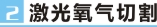 激光氧氣切割原理類似于氧乙炔切割,它是用激光作為預熱熱源,用氧氣等活性氣體作為切割氣體,噴吹出的氣體一方面與切割金屬作用,發生氧化反應,放出大量的氧化熱;另一方面把熔融的氧化物和熔化物從反應區吹出,在金屬中形成切口。由于切割過程中的氧化反應產生了大量的熱,所以激光氧化切割所需要的能量只是熔化切割的1/2,而切割速度遠遠大于激光汽化切割和熔化切割。激光氧化切割主要用于碳鋼、鈦鋼以及熱處理鋼等易氧化的金屬材料。
