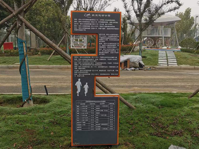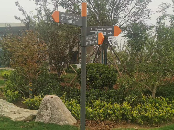 航空運動公園制作安裝實拍現場圖片,主要有導視牌、指示牌、提示牌等。