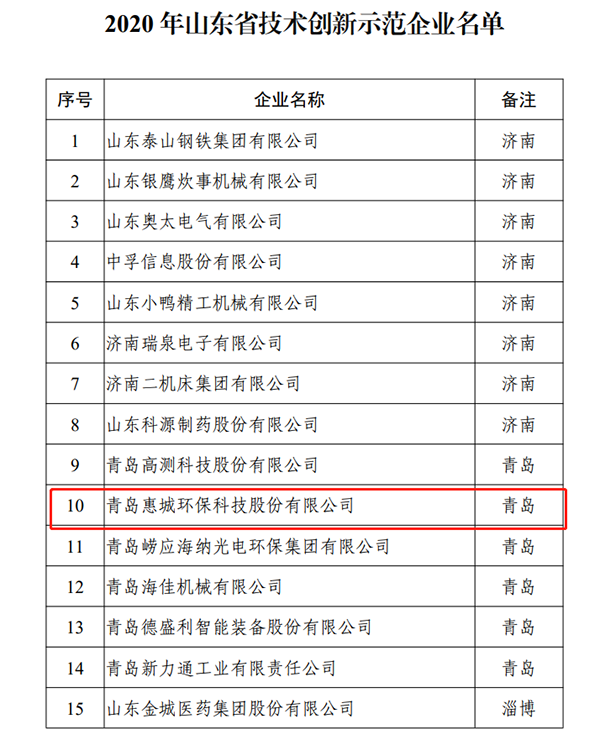 近日,經(jīng)山東省工信廳認定,我公司成功入選2020年山東省技術創(chuàng)新示范企業(yè)。
